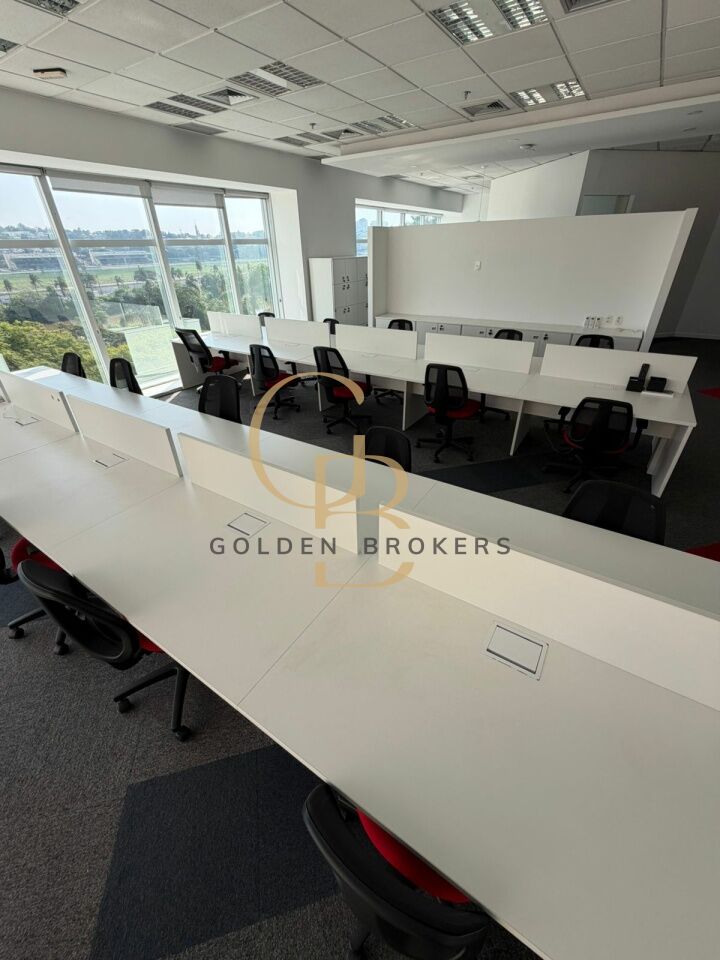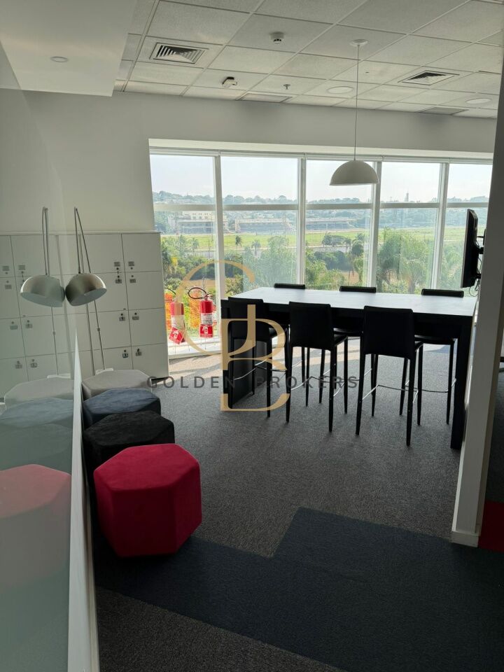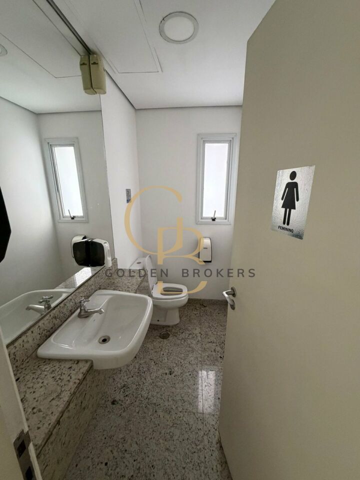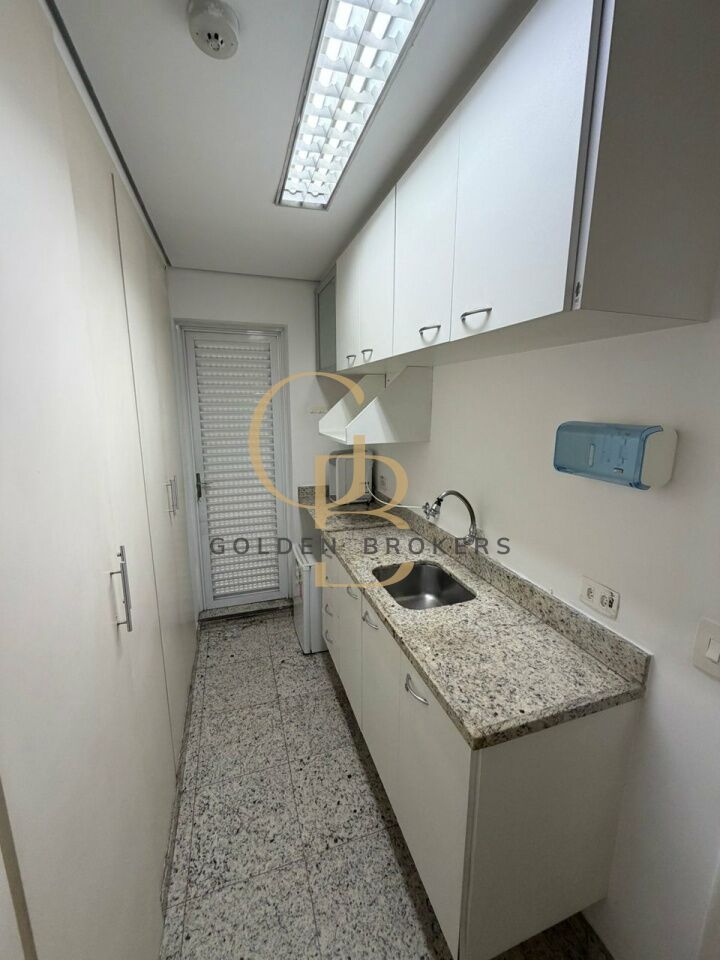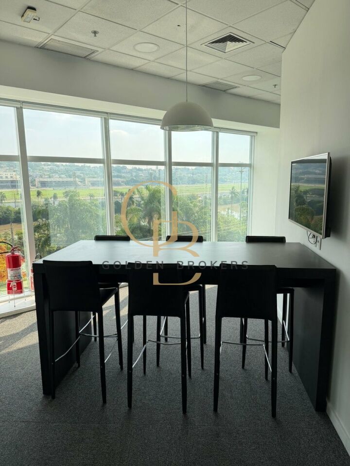Conjunto comercial com 158,40 m² de a.u, (mobiliado) com 20 posições de trabalho, 1 espaço aberto para reunião com 6 cadeiras e 1 sala de reunião com 9 cadeiras. 5 vagas de garagem.