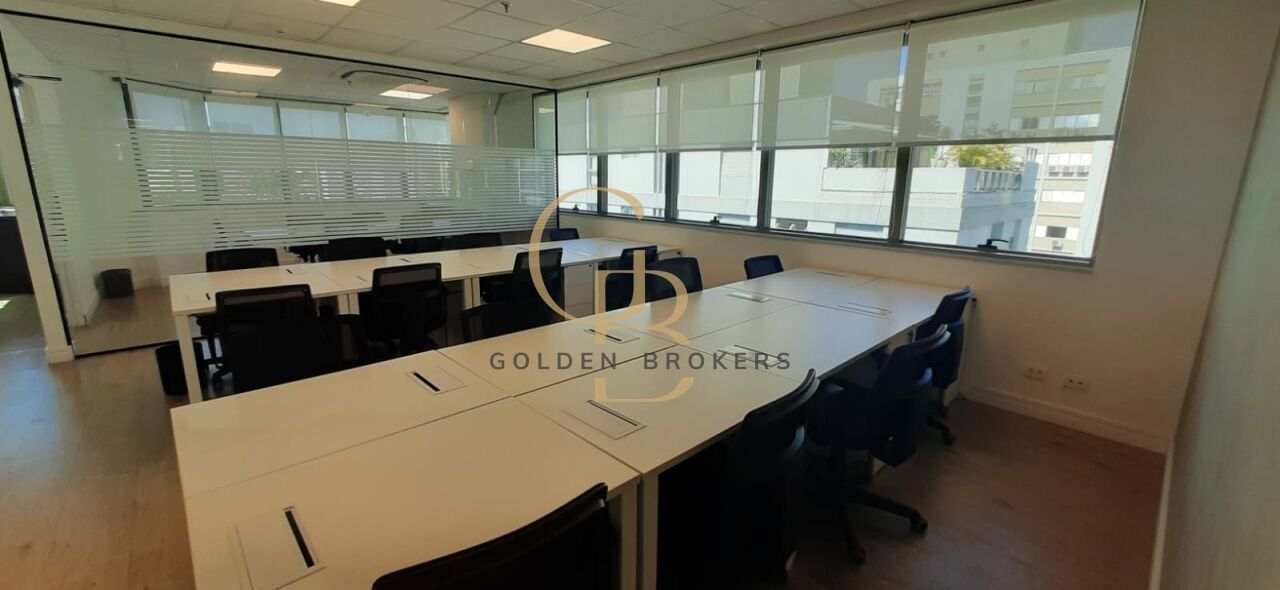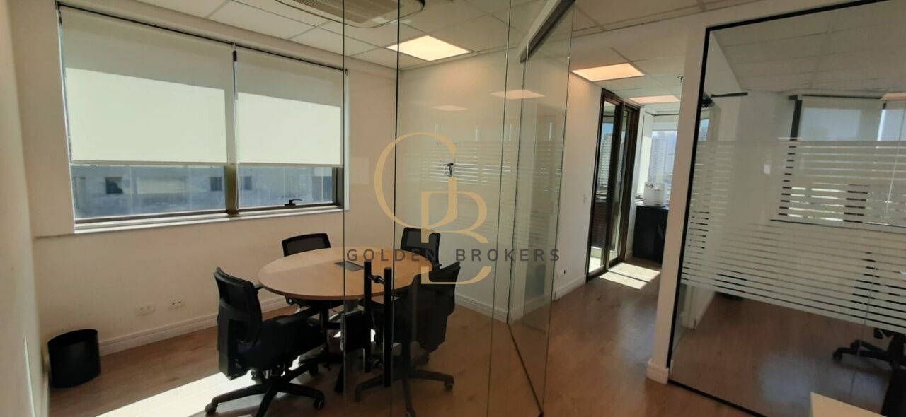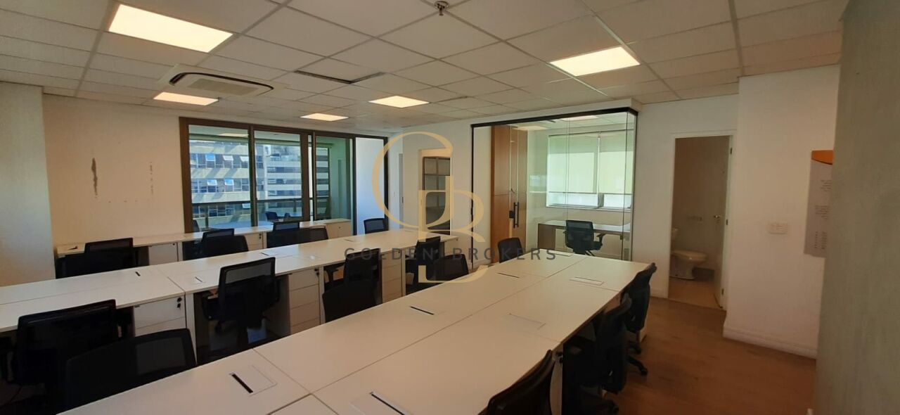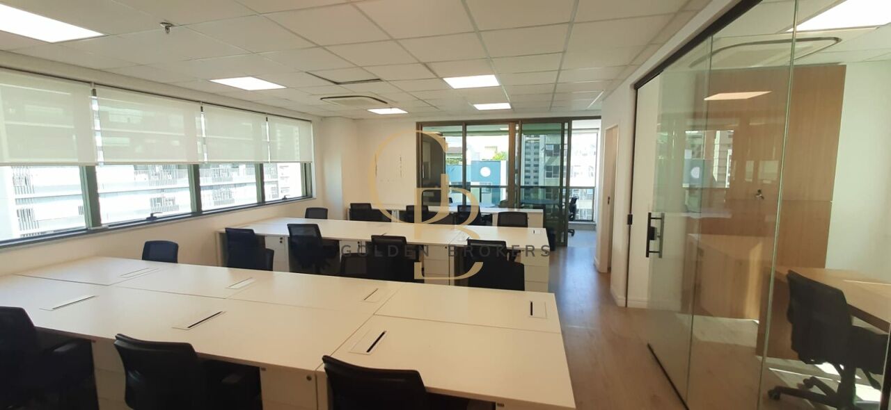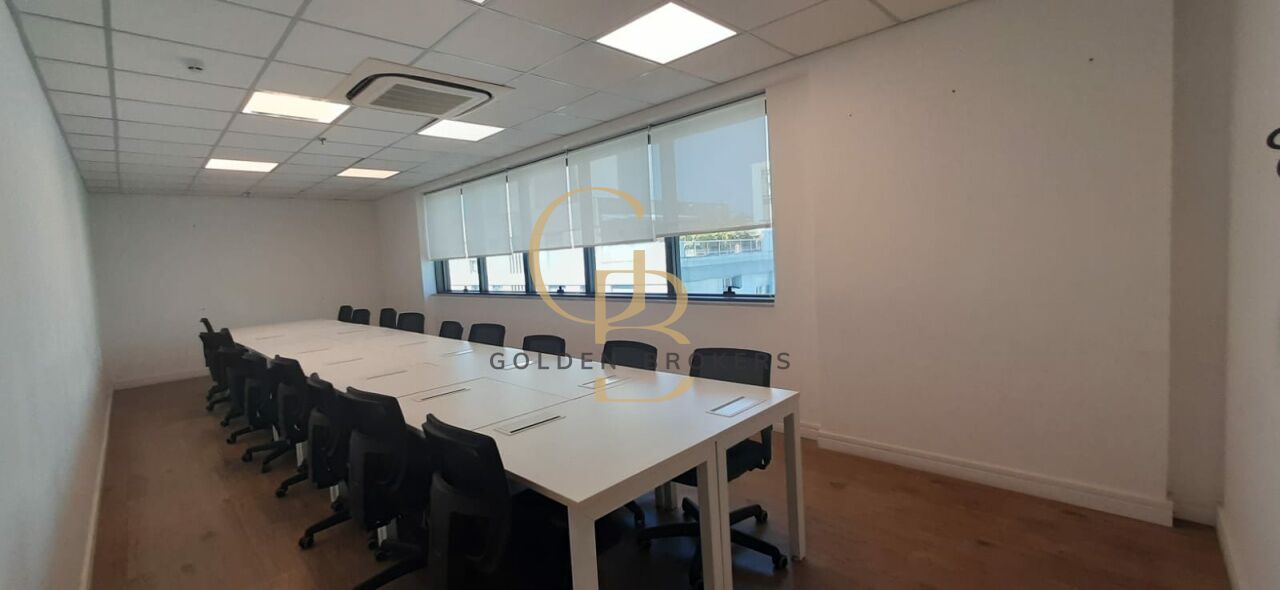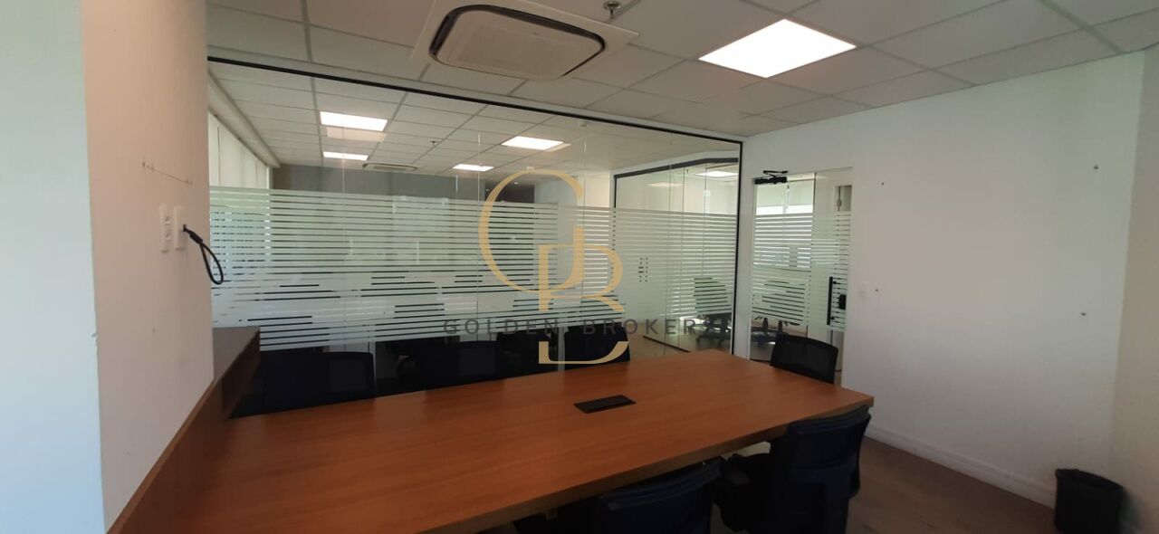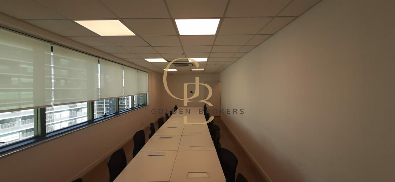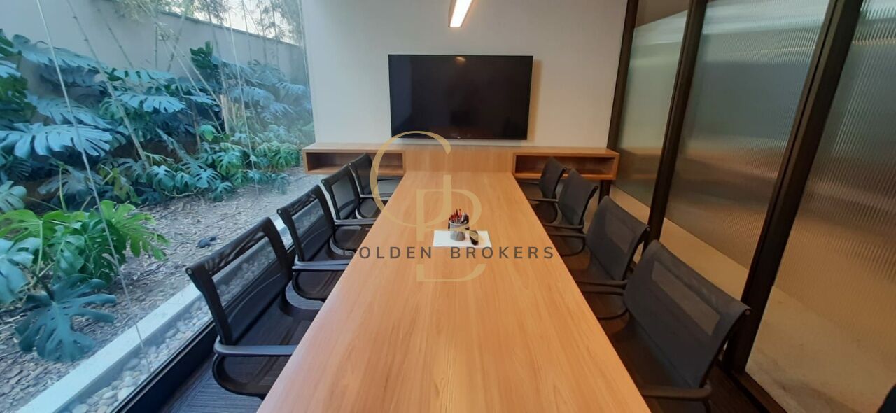 Conjunto Comercial com 232 m² de a.u, com 64 posições de trabalho, 4 banheiros, 01 sala de reunião para 09 pessoas, 01 sala de reunião para 04 pessoas, 01 sala de diretoria, 01sala comercial com 19 posições de trabalho que somam ao montante de 64 posições;