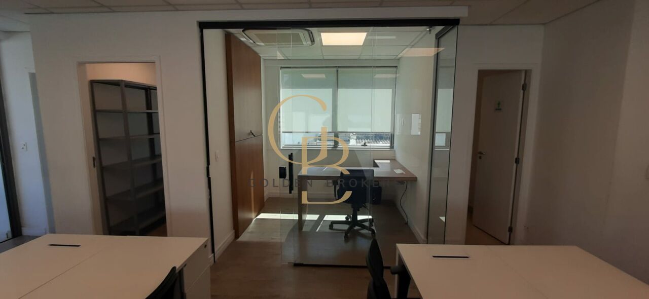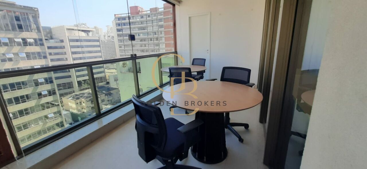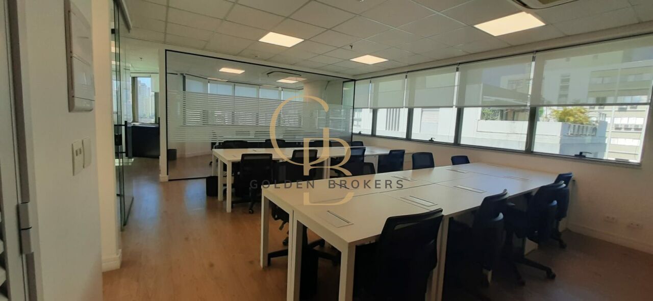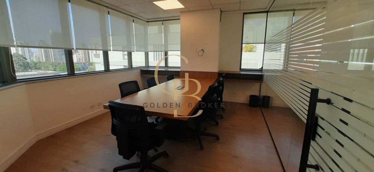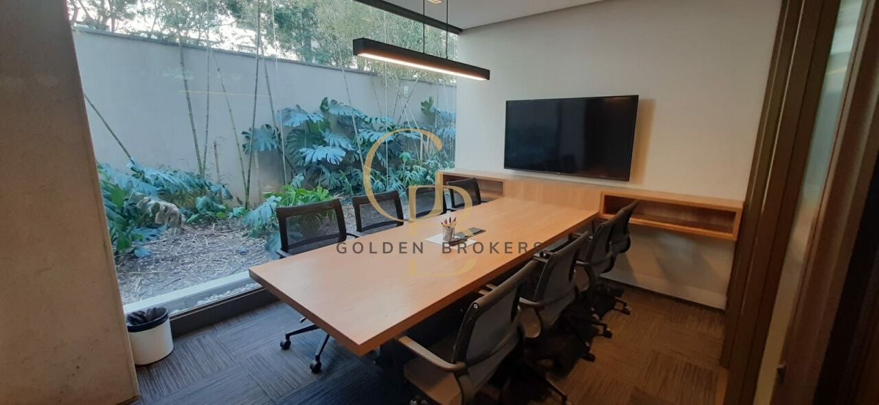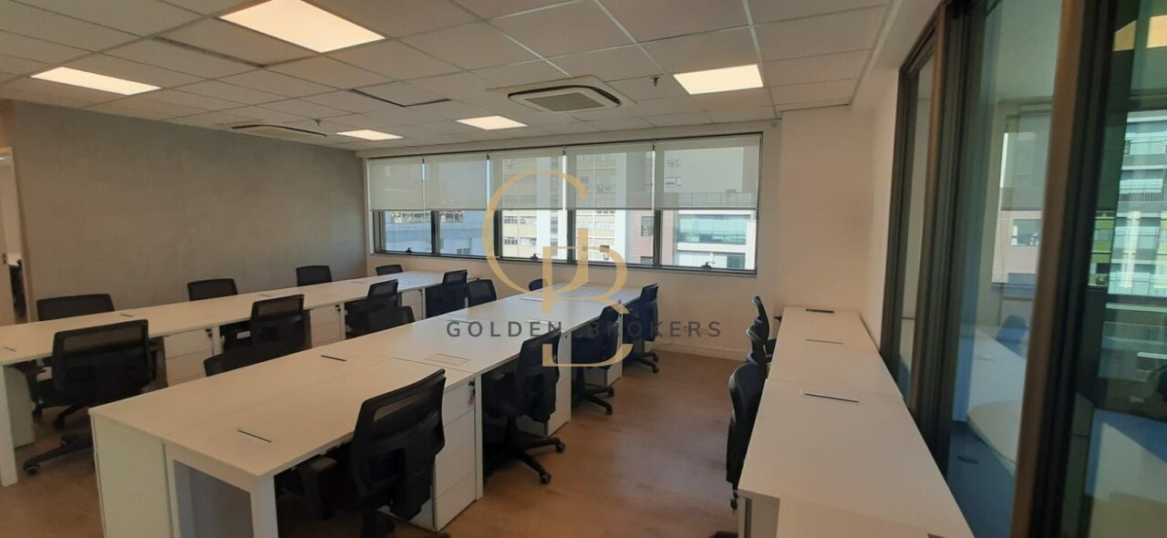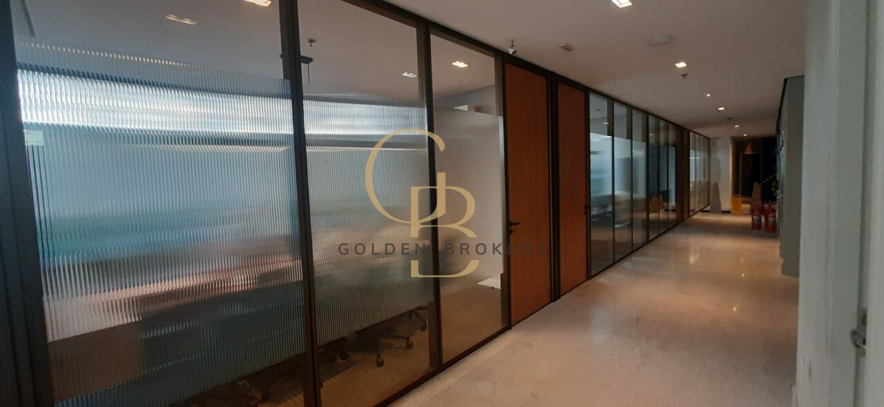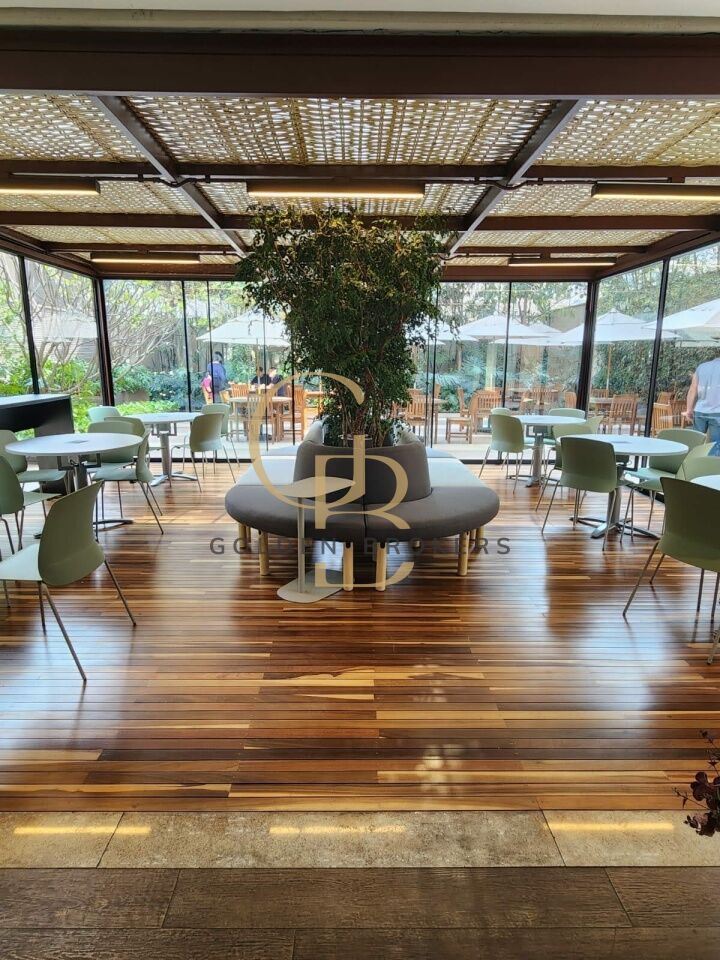 Conjunto Comercial com 232 m² de a.u, com 64 posições de trabalho, 4 banheiros, 01 sala de reunião para 09 pessoas, 01 sala de reunião para 04 pessoas, 01 sala de diretoria, 01sala comercial com 19 posições de trabalho que somam ao montante de 64 posições;
