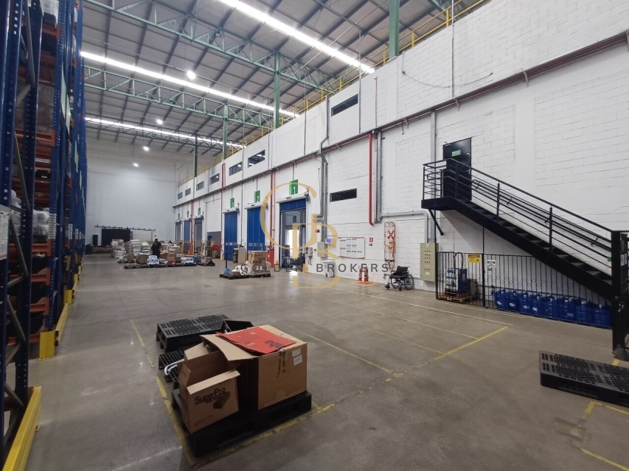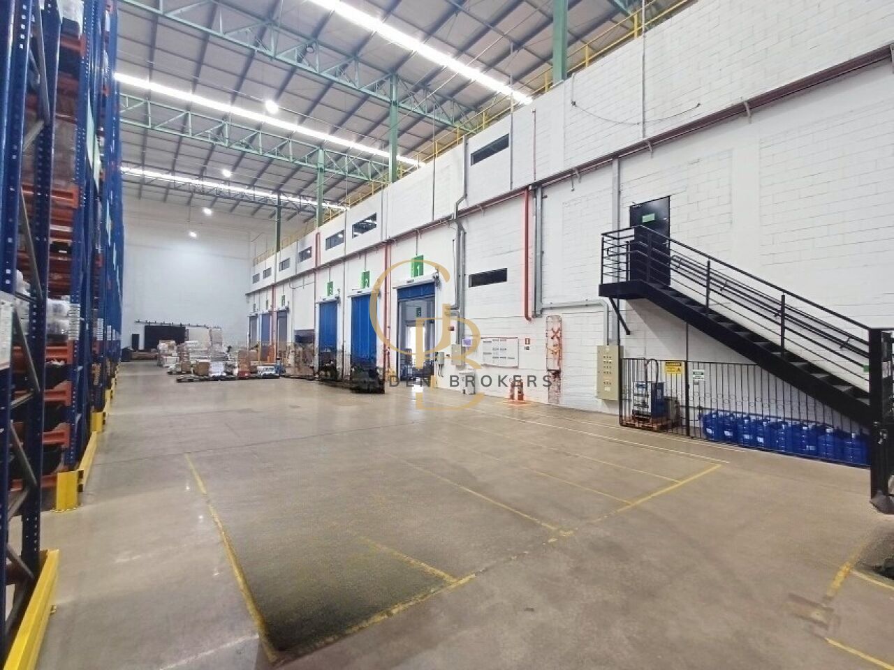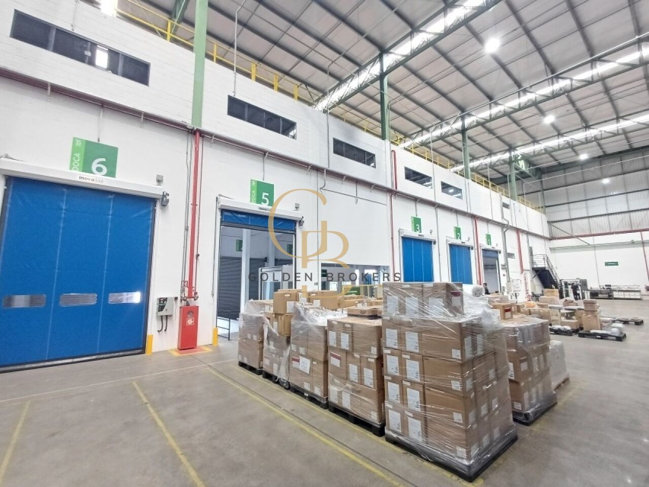 Galpão dispõe de 5.452m² de área construída ou 7.000 m² (BOMA), com 10 (Docas), com Pé direito de 17 m, Piso 15 toneladas, com iluminação natural, estacionamento para carros e motos e PNE.