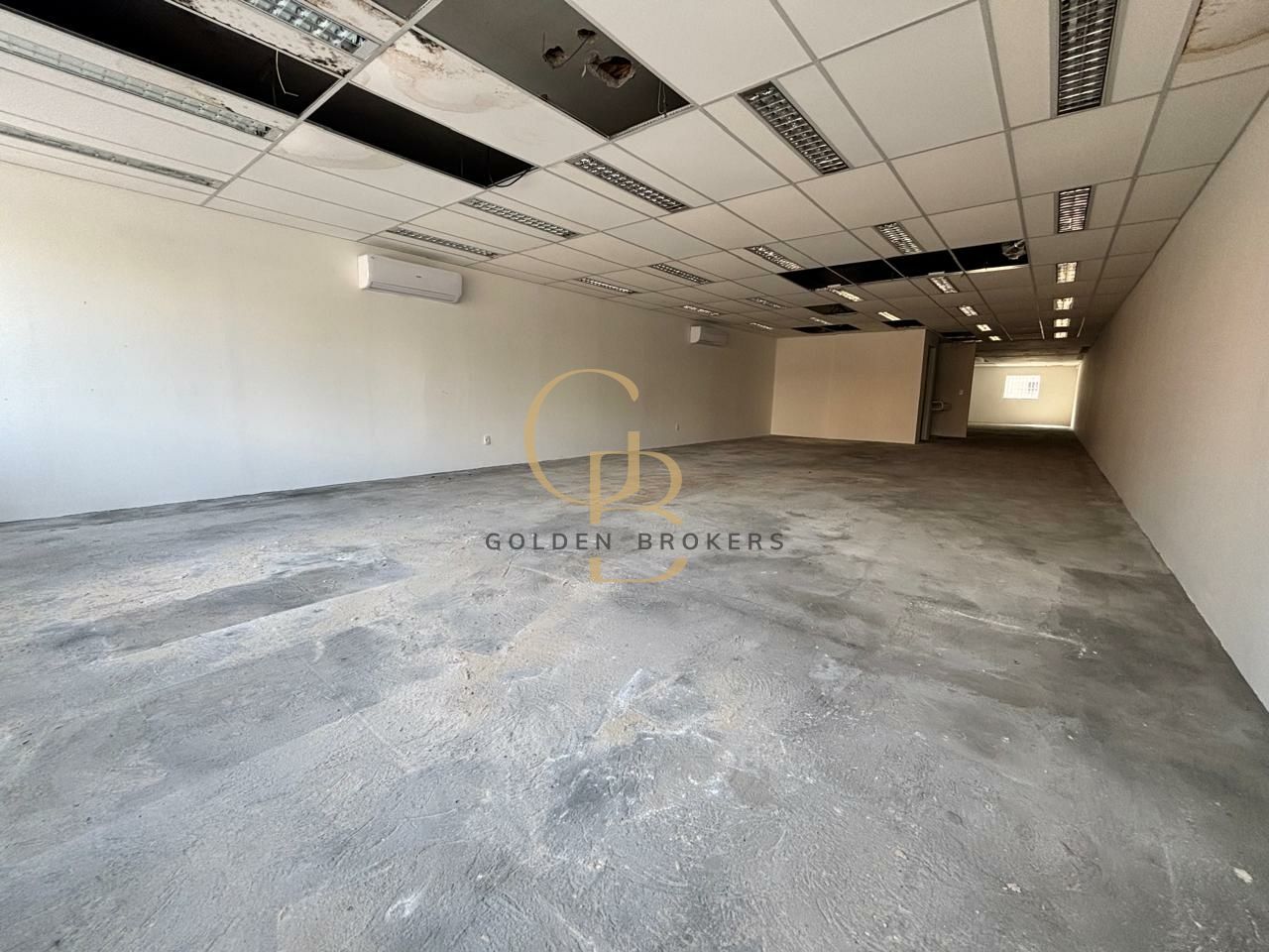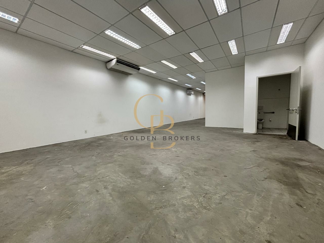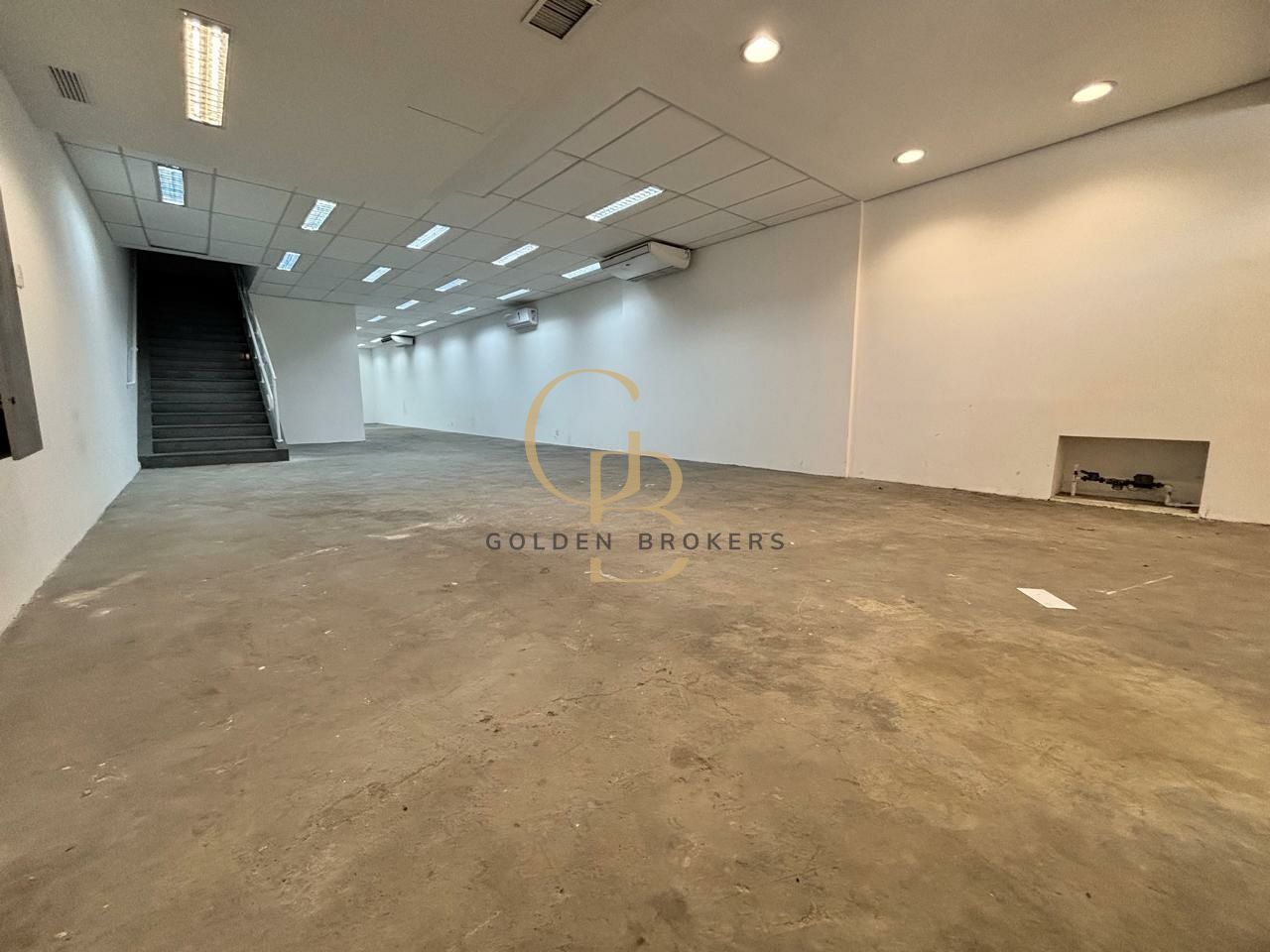 Ponto comercial em vão livre, com escritório com salas e banheiros, além de deck com churrasqueira, totalizando 400 m².